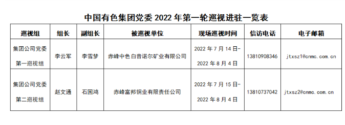 本輪巡視現(xiàn)場工作時間3周左右。期間,巡視組設(shè)有專門值班電話和電子郵箱,主要受理反映被巡視企業(yè)黨委領(lǐng)導(dǎo)班子及其成員、下一級主要負責(zé)人和重要崗位領(lǐng)導(dǎo)干部的來信來電來訪。巡視組受理信訪時間截止到2022年8月4日。