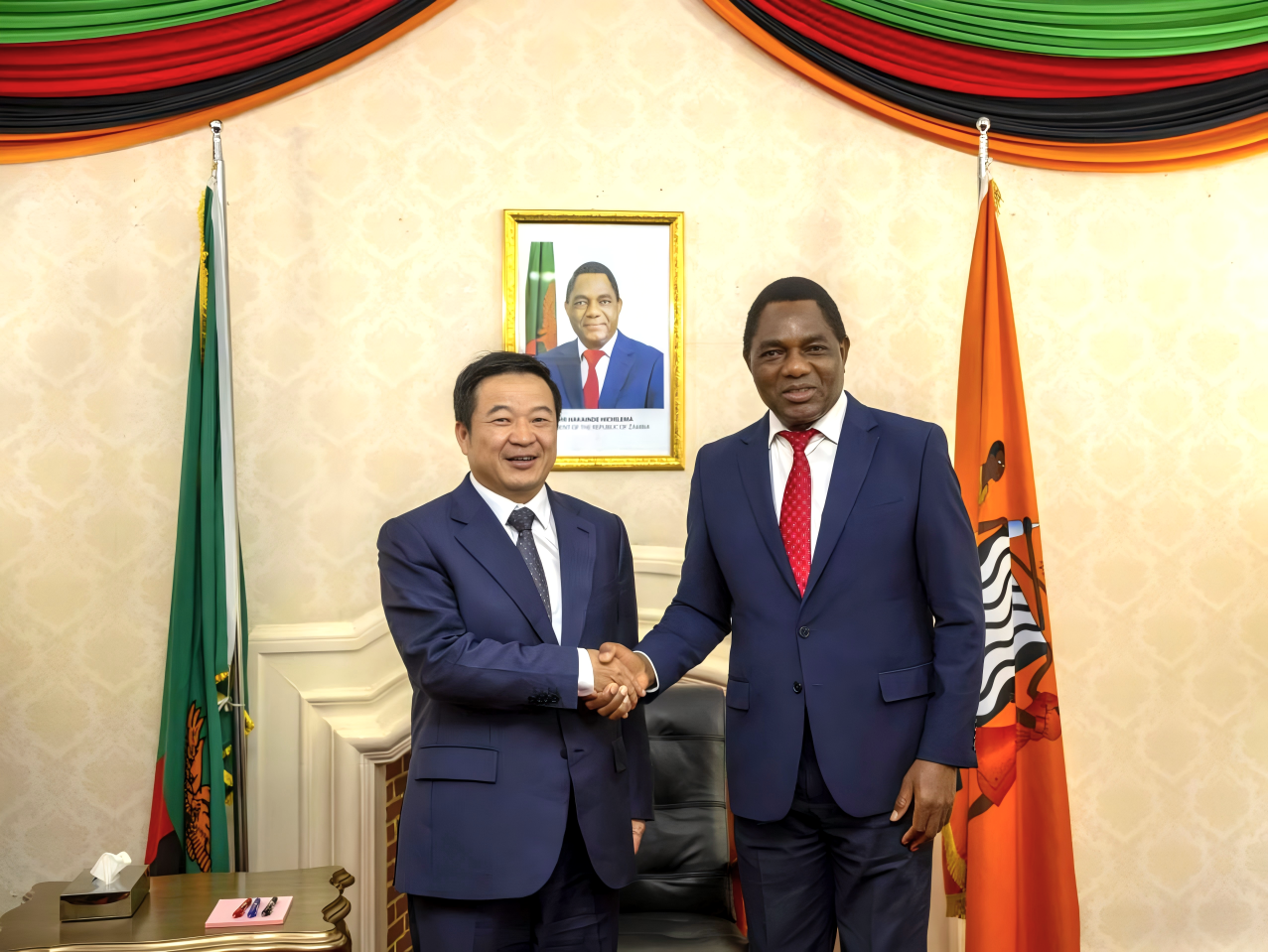 文崗拜會(huì)贊比亞總統(tǒng)哈凱恩德·希奇萊馬