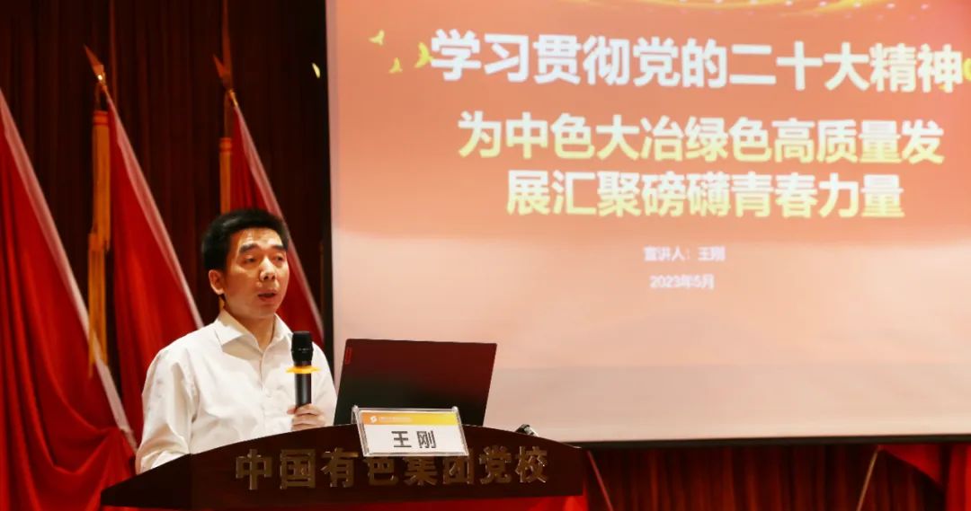 ????宣講人以《學(xué)習(xí)貫徹黨的二十大精神為 中色大冶綠色高質(zhì)量發(fā)展匯聚磅礴青春力量》為題,從為什么黨的二十大如此重要、黨的二十大報(bào)告有哪些新提法、從黨的二十大報(bào)告中學(xué)什么,以及如何理解黨的二十大報(bào)告中關(guān)于青年工作的論述、新時(shí)代有色青年應(yīng)該怎么干等五個(gè)方面,結(jié)合公司實(shí)際,深入淺出地講解了如何學(xué)習(xí)貫徹黨的二十大精神,強(qiáng)化理論武裝、筑牢思想根基,把二十大精神落實(shí)到具體行動(dòng)之中,永遠(yuǎn)跟黨走,奮進(jìn)新征程。