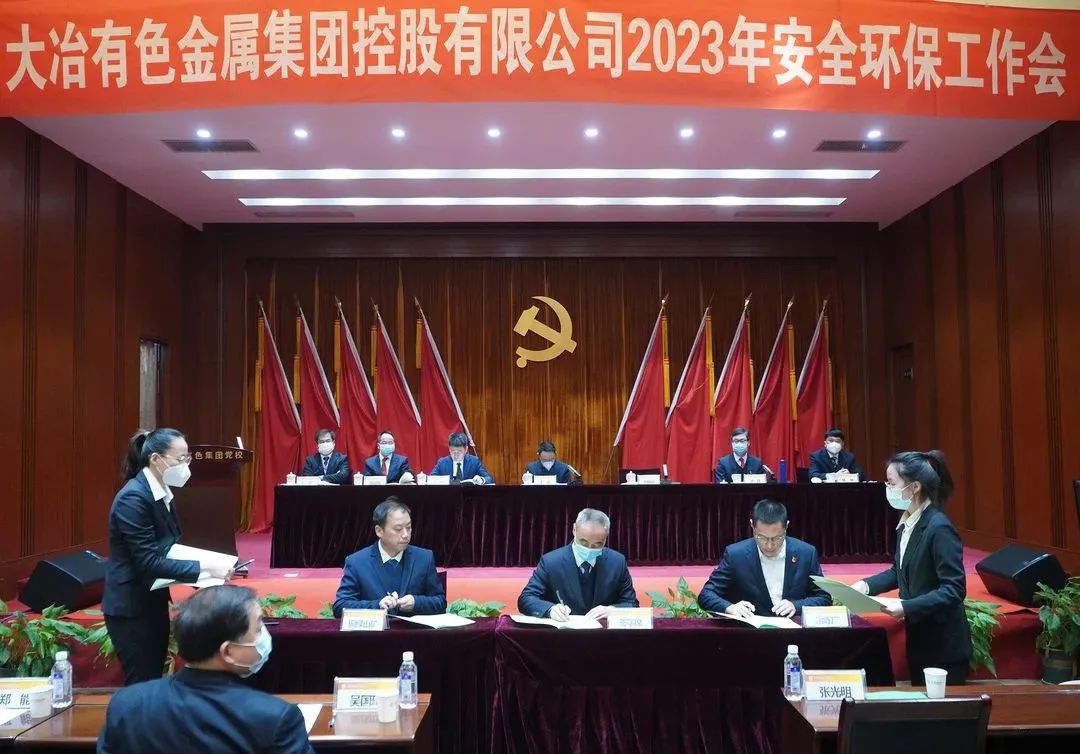 ????胡國(guó)斌與冶煉廠、銅綠山礦、豐山銅礦、弘盛銅業(yè)、銅山口礦、金格公司主要負(fù)責(zé)人現(xiàn)場(chǎng)簽訂了2023年度安全、環(huán)保工作目標(biāo)責(zé)任書(shū)。銅綠山礦、冶煉廠、金格公司3家單位主要負(fù)責(zé)人分別就安全環(huán)保工作作表態(tài)發(fā)言。