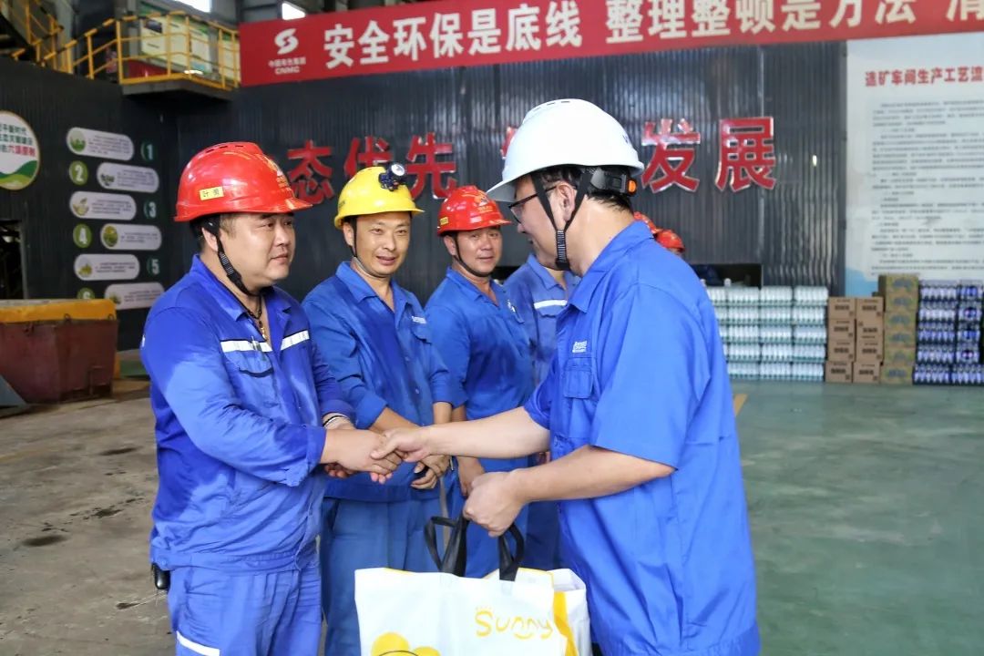 公司黨委書(shū)記、董事長(zhǎng)胡國(guó)斌一行到冶煉廠轉(zhuǎn)爐車間精煉爐圓盤(pán)澆筑區(qū)現(xiàn)場(chǎng)、電解30萬(wàn)噸現(xiàn)場(chǎng)“送清涼”。胡國(guó)斌表示,近期高溫天氣持續(xù),大家堅(jiān)守工作崗位十分辛苦,感謝大家為公司發(fā)展作出的貢獻(xiàn)。今年上半年公司生產(chǎn)經(jīng)營(yíng)平穩(wěn)運(yùn)行,這與大家的辛勤付出是密不可分的;下半年由于銅加工費(fèi)下降,面臨的任務(wù)更重、形勢(shì)更加困難,希望大家堅(jiān)定信心,共同努力,進(jìn)一步做好安全環(huán)保、產(chǎn)品質(zhì)量、成本管控等工作,完成全年生產(chǎn)經(jīng)營(yíng)任務(wù)以及增產(chǎn)上儲(chǔ)、科技賦能新材料等重點(diǎn)工作,為公司高質(zhì)量發(fā)展注入強(qiáng)勁動(dòng)能。胡國(guó)斌強(qiáng)調(diào),高溫季節(jié),要采取有效措施防暑降溫,合理安排時(shí)間、注重勞逸結(jié)合,既保證生產(chǎn)進(jìn)度,也注意安全健康。公司將按照集團(tuán)要求,進(jìn)一步推進(jìn)智能化工廠、黑燈工廠建設(shè),讓職工在空調(diào)房里操控,少在現(xiàn)場(chǎng)流汗,為大家提供更好、更清涼的工作環(huán)境。