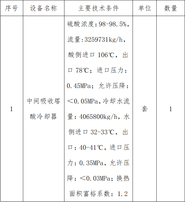 1.項(xiàng)目名稱(chēng):中色大冶冶煉廠中間吸收塔酸冷卻器采購(gòu)項(xiàng)目